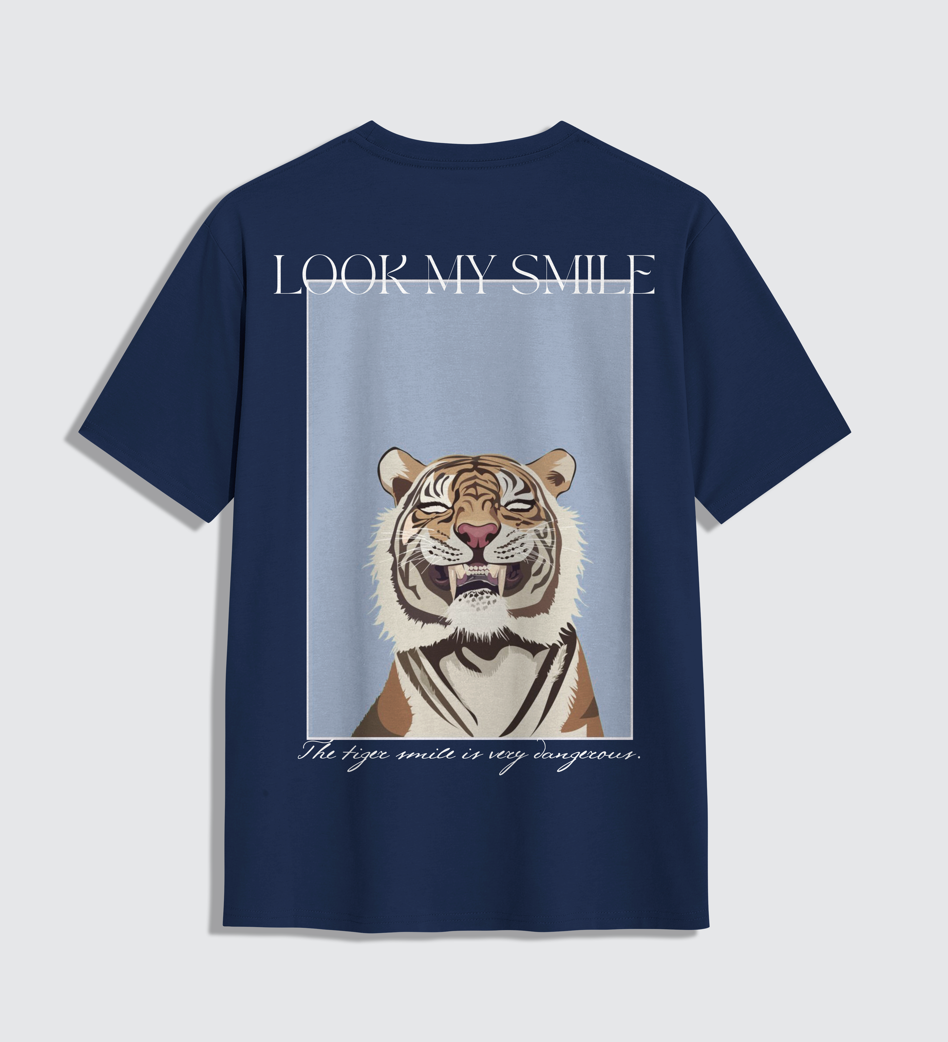 Not every smile is friendly—some are fierce. The “SMILE” tee captures the fearless expression of a tiger mid-grin, reminding the world that even danger can wear a smile. A symbol of power hidden behind calm.